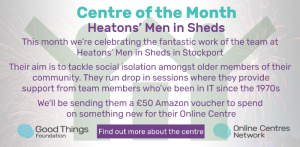 Heatons’ Men In Sheds are accredited by “Good Things Foundation” to provide computer training courses.